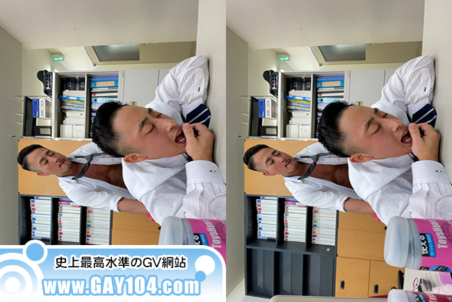 男性社員2人、オフィスでちんこをしごきながら、新商品を試していく。
